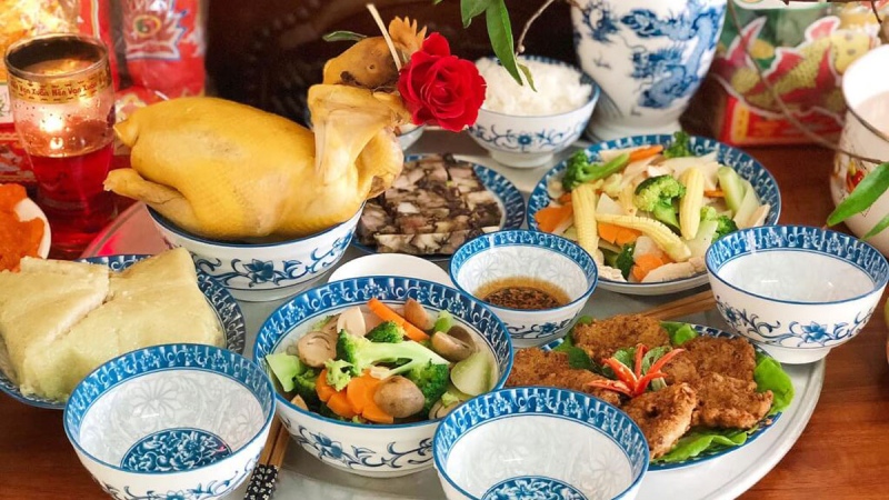 Lễ cúng thần linh thông thường sẽ gồm gà luộc nguyên con hoặc xôi. Bạn cũng có thể cúng bánh chưng đã được lột lá, 1 bầu rượu, trái cây, hoa tươi và trà. Gợi ý cho bạn bí quyết nấu xôi ngon để dâng cúng thần linh. Hay bạn muốn tự tay làm bánh chưng để thể hiện lòng thành kính thì mẹo luộc bánh chưng xanh tự nhiên cũng là gợi ý hữu ích cho bạn đấy!
